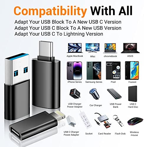 6 Pack [USB C to USB]&[USB C to Lightning]&[USB to USB C] USB C to USB Adapter Female SuperSpeed